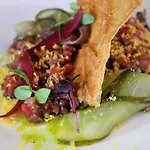 Das Restaurant Gadus mit einer großen Auswahl an Gerichten ist einen 5-minütigen Spaziergang vom Hotel Eliassen Rorbuer entfernt.